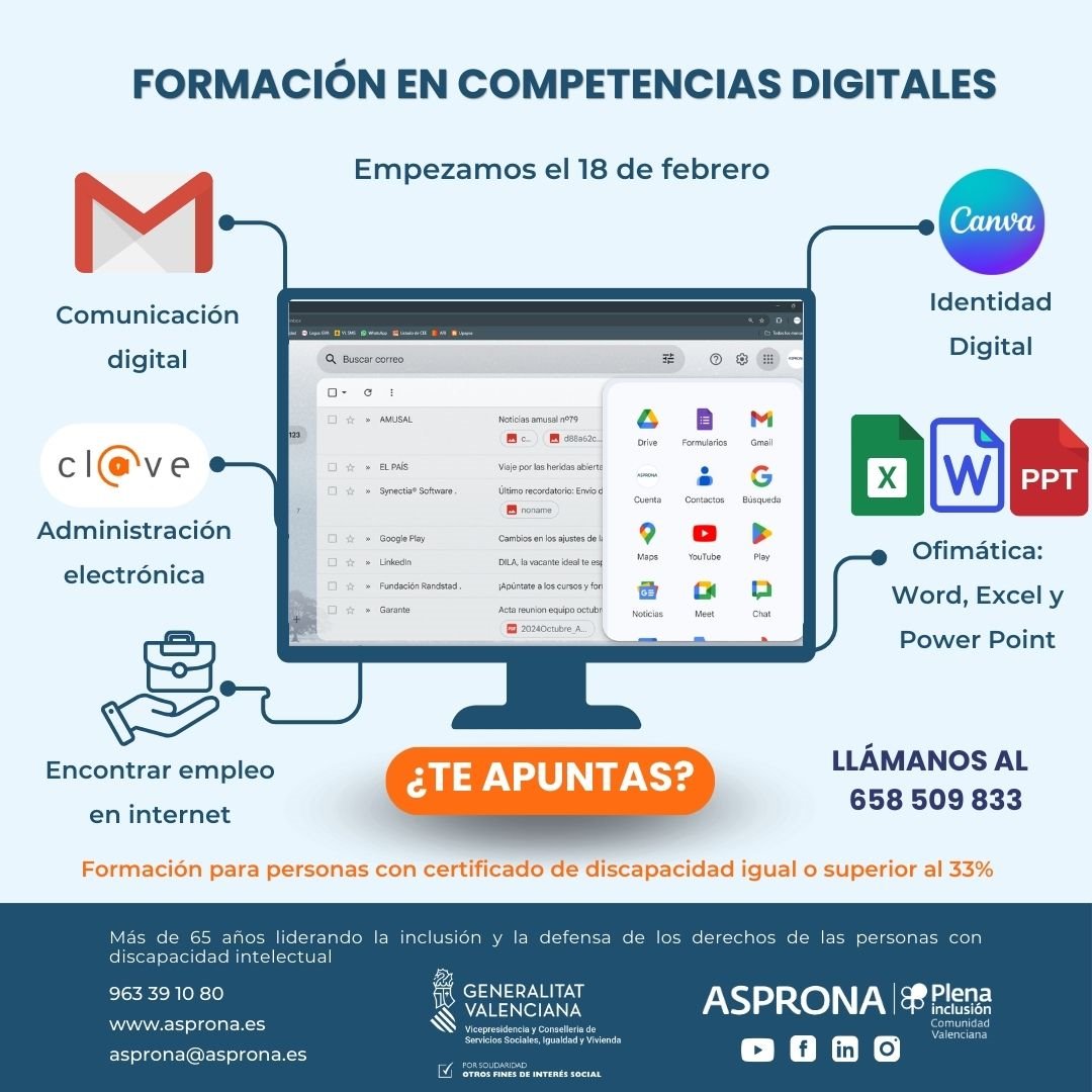 #ConéctateAlEmpleo #InclusiónDigital #FormaciónParaElEmpleo #AspronaValencia #XSolidaria #IRPF #CompetenciasDigitales